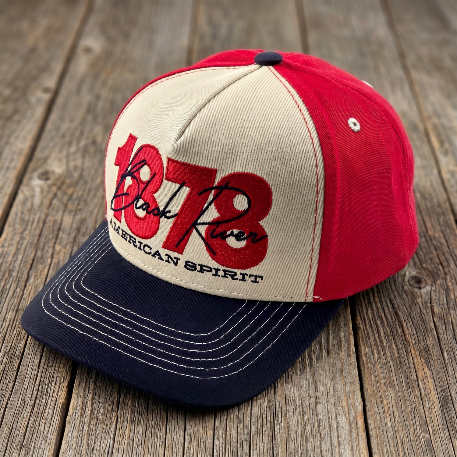 Kasket - Black River 1878 Trucker (creme/rød/marineblå)